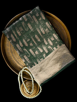 Bottle Green Silk Brocade Handloom Banarasi Saree