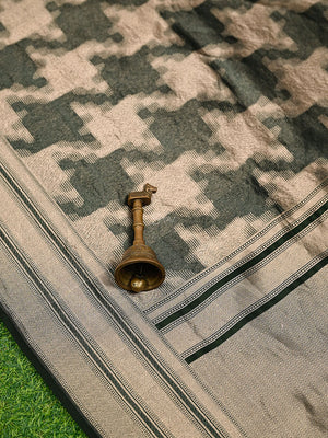Bottle Green Silk Brocade Handloom Banarasi Saree