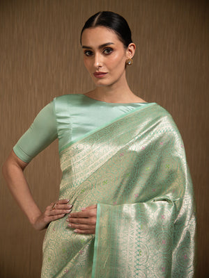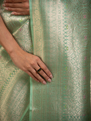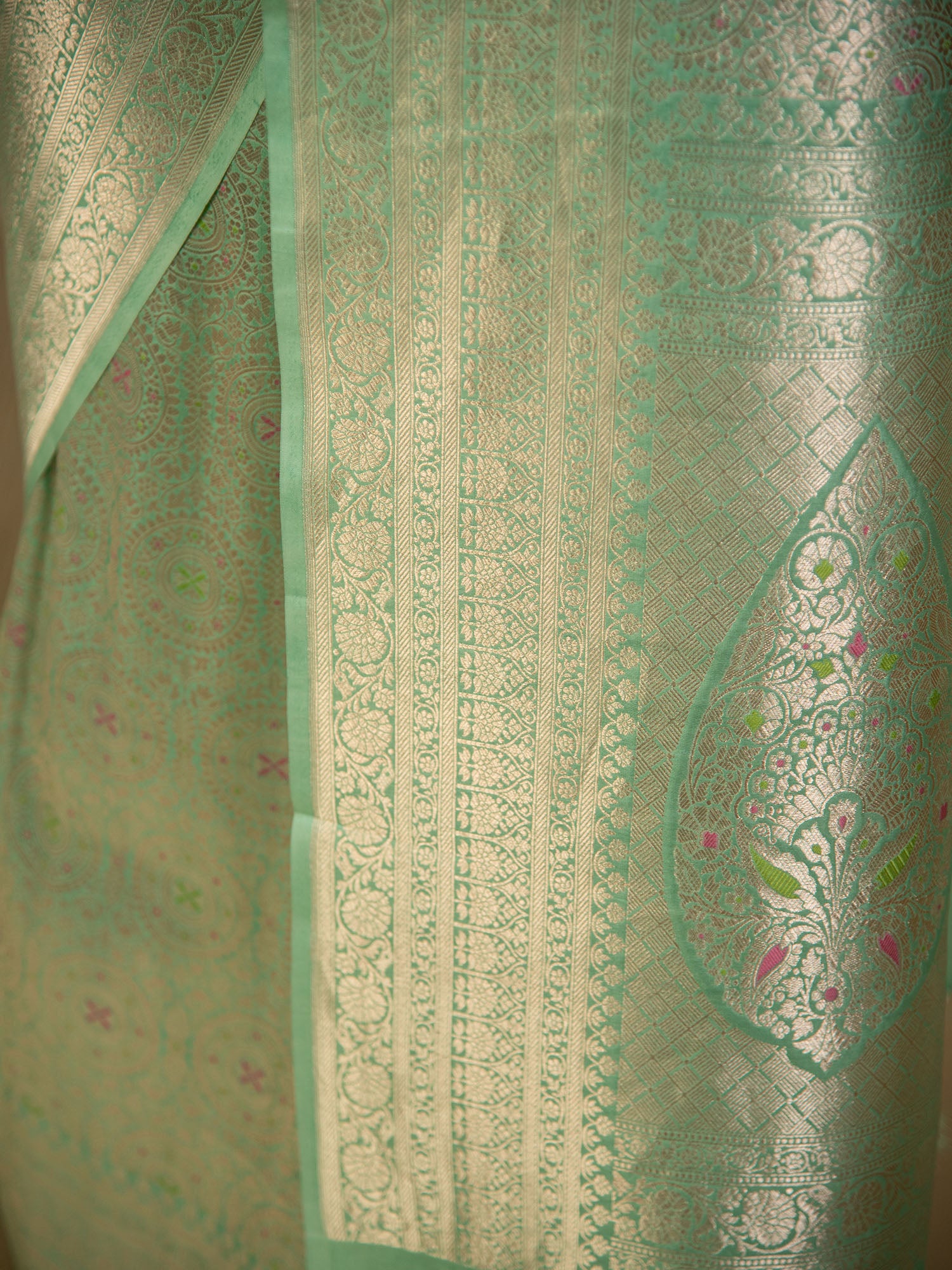 Pastel Aqua Green Meenakari Silk Brocade Handloom Banarasi Saree
