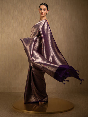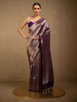 Purple Meenakari Silk Brocade Handloom Banarasi Saree