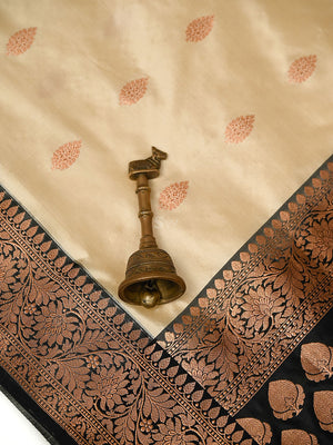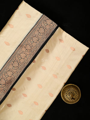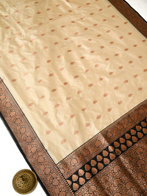 Cream Boota Katan Silk Handloom Banarasi Saree