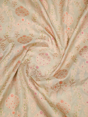 Cream Meenakari Jaal Uppada Katan Silk Handloom Banarasi Saree