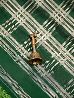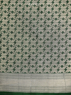 Directly crafted from the heart of Banaras, this dark green Silk Banarasi Saree combines traditional artistry with modern elegance. Its soft fabric offers effortless draping and lightweight comfort, making it an ideal choice for young women who appreciate timeless style with a contemporary touch.