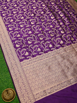 Purple Jaal Uppada Katan Silk Handloom Banarasi Saree