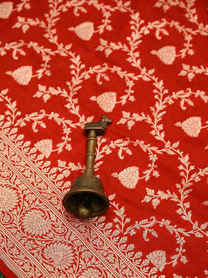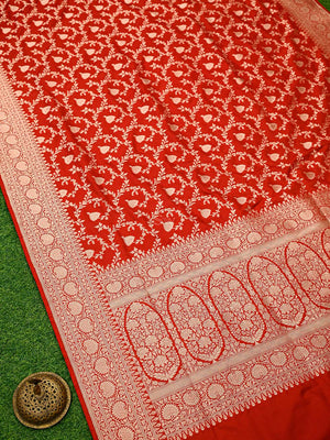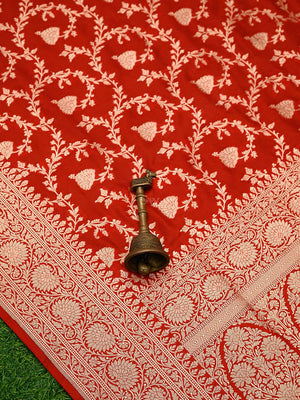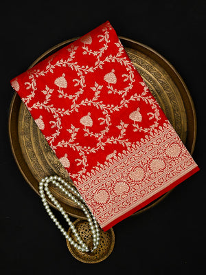 Red Jaal Uppada Katan Silk Handloom Banarasi Saree