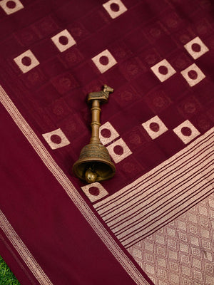 Directly crafted from the heart of Banaras, this wine Silk Banarasi Saree combines traditional artistry with modern elegance. Its soft fabric offers effortless draping and lightweight comfort, making it an ideal choice for young women who appreciate timeless style with a contemporary touch.