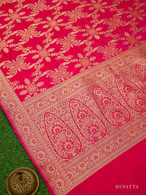 A perfect handloom lehenga woven with delicate zari work. A work of adoration, epitomising hundreds of years of weaving customs and long periods of meticulous craftsmanship.