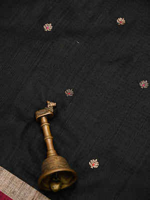 Black Booti Dupion Silk Handloom Banarasi Saree