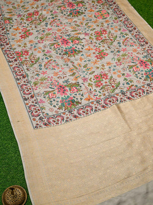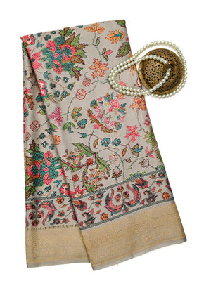 Experience the perfect blend of tradition and modern elegance with our Banarasi saree. Crafted from luxurious satin silk, it features vibrant digital floral designs and a golden sparrow border. Elevate your style and comfort at weddings with this timeless and beautiful saree.