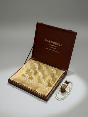 SW Assurance -With vows to sustainable fashion, this pure silk handloom product from Banaras is a masterpiece involving 369 hours of brilliance & sheer endeavor of our creative artisans. We pledge to cease child labor.