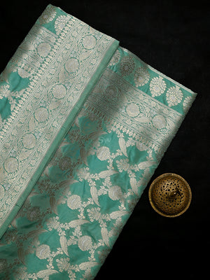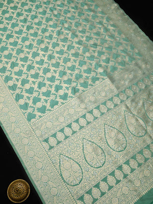 Aqua Green Jaal Uppada Katan Silk Handloom Banarasi Saree