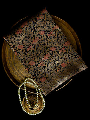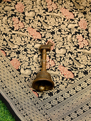 Directly crafted from the heart of Banaras, this Black Silk Brocade Handloom Banarasi Saree combines traditional artistry with modern elegance. Its soft brocade fabric offers effortless draping and lightweight comfort, making it an ideal choice for young women who appreciate timeless style with a contemporary touch. This saree’s rich texture and classic appeal make it perfect for both formal occasions and festive celebrations.