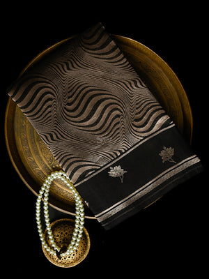 Directly crafted from the heart of Banaras, this Black Silk Brocade Handloom Banarasi Saree combines traditional artistry with modern elegance. Its soft brocade fabric offers effortless draping and lightweight comfort, making it an ideal choice for young women who appreciate timeless style with a contemporary touch. This saree’s rich texture and classic appeal make it perfect for both formal occasions and festive celebrations.