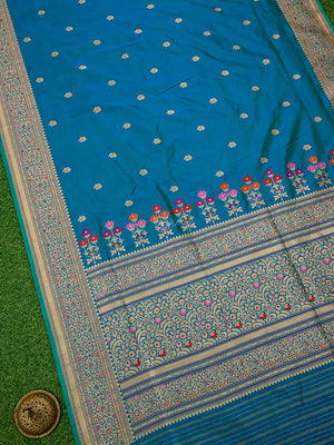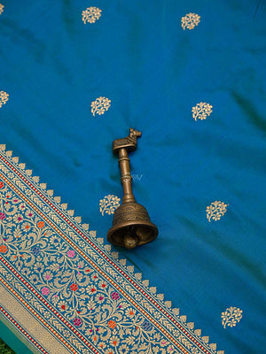 Blue Green Booti Katan Silk Handloom Banarasi Saree