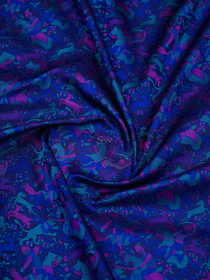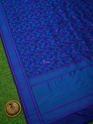 Blue Pure Satin Silk Banarasi saree with Tanchoi jaal across the body. It has a multi-color Resham Weaves border and pallu. It's an artistic tradition and a classic masterpiece. This marvelous piece must for your trousseau collection.