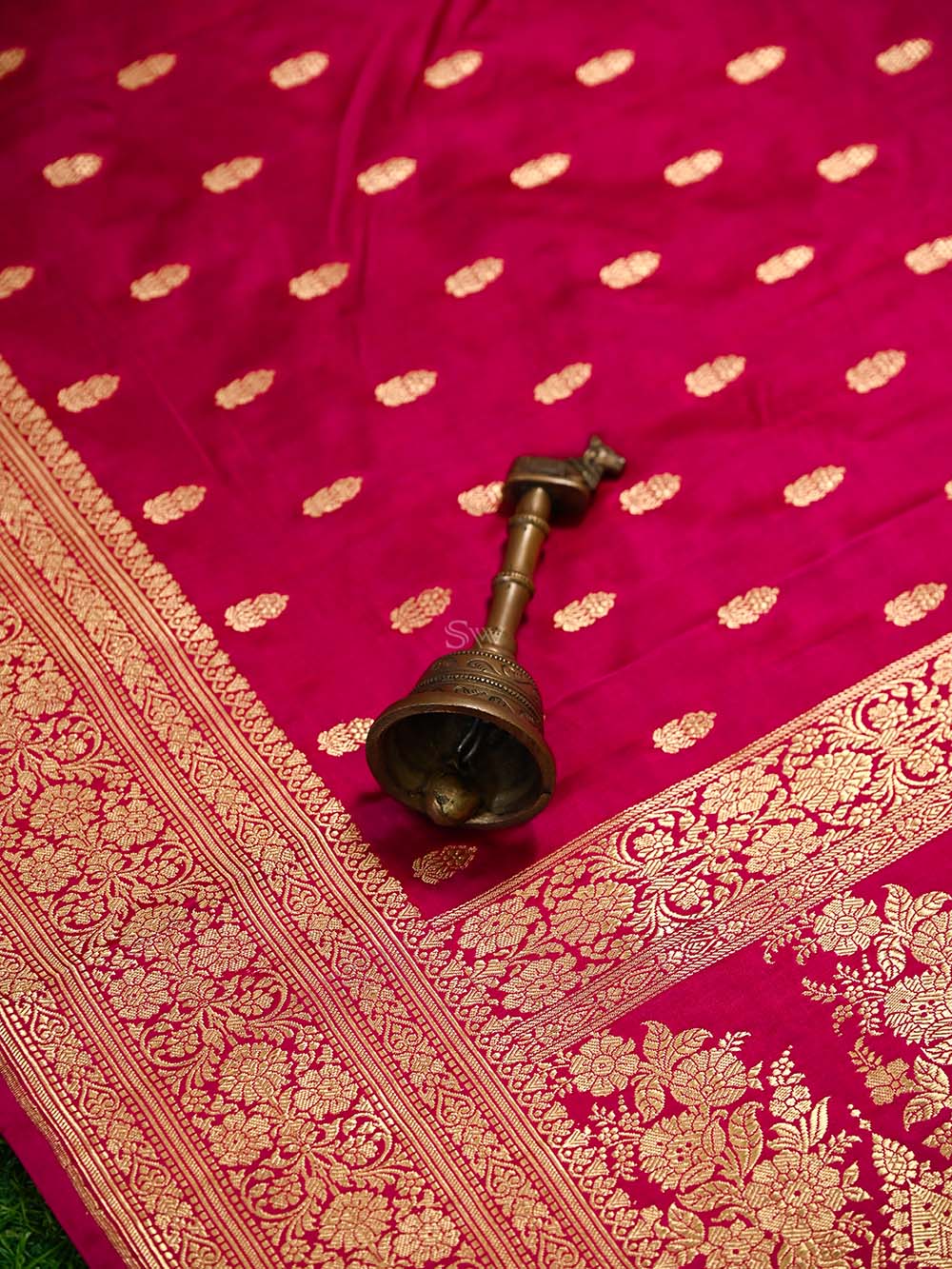 • SW Assurance - With vows to sustainable fashion, this pure silk handloom product from Banaras is a masterpiece involving 169 hours of brilliance & sheer endeavor of our creative artisans. We pledge to cease child labor.