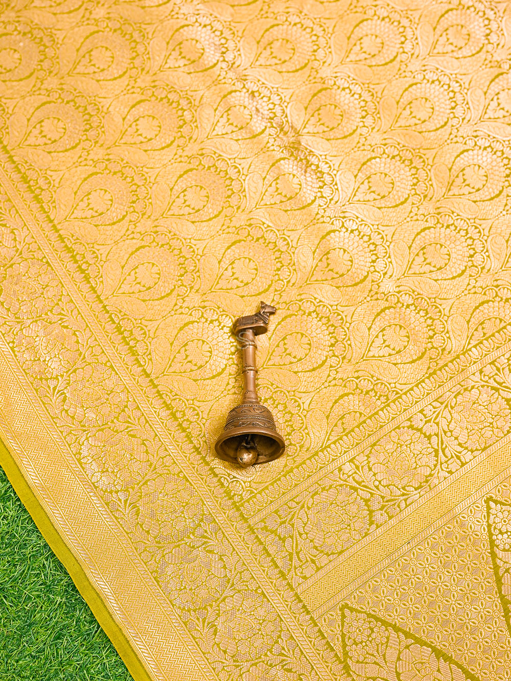 Directly crafted from the heart of Banaras, this lime green silk brocade handloom Banarasi saree combines traditional artistry with modern elegance. Its soft brocade fabric offers effortless draping and lightweight comfort, making it an ideal choice for young women who appreciate timeless style with a contemporary touch. This saree’s rich texture and classic appeal make it perfect for both formal occasions and festive celebrations.