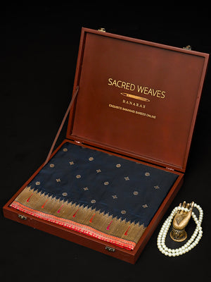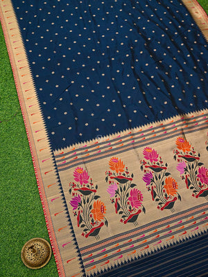 Midnight Blue Paithani Katan Silk Handloom Banarasi Saree