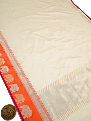 Off White Satin Silk Handloom Banarasi Saree