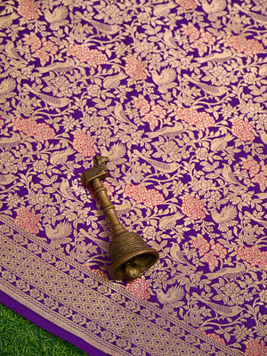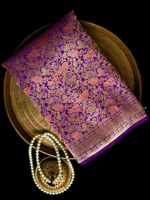 Directly crafted from the heart of Banaras, this purple silk brocade handloom Banarasi saree combines traditional artistry with modern elegance. Its soft brocade fabric offers effortless draping and lightweight comfort, making it an ideal choice for young women who appreciate timeless style with a contemporary touch. This saree’s rich texture and classic appeal make it perfect for both formal occasions and festive celebrations.