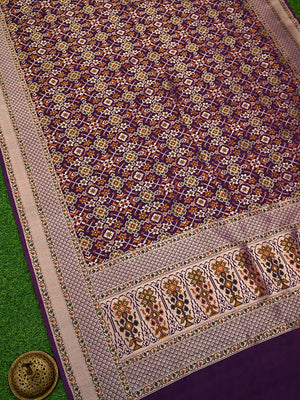 This Floral Beauty with so many colors is Gorgeous. This classic handwoven Banarasi saree has gold zari jaal with meenakari art. Meenakari involves different colors of Resham threads during weaving. It has Paithani broad border and Paithani pallu in Gold zari. The fabric has a soft feel. It's classic traditional Banarasi saree apt for all celebrations.
