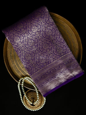 Directly crafted from the heart of Banaras, this Purple Silk Brocade Handloom Banarasi Saree combines traditional artistry with modern elegance. Its soft brocade fabric offers effortless draping and lightweight comfort, making it an ideal choice for young women who appreciate timeless style with a contemporary touch. This saree’s rich texture and classic appeal make it perfect for both formal occasions and festive celebrations.