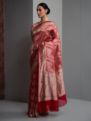 Directly crafted from the heart of Banaras, this Red Silk Brocade Handloom Banarasi Saree combines traditional artistry with modern elegance. Its soft brocade fabric offers effortless draping and lightweight comfort, making it an ideal choice for young women who appreciate timeless style with a contemporary touch. This saree’s rich texture and classic appeal make it perfect for both formal occasions and festive celebrations.