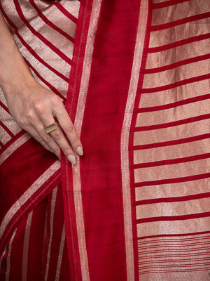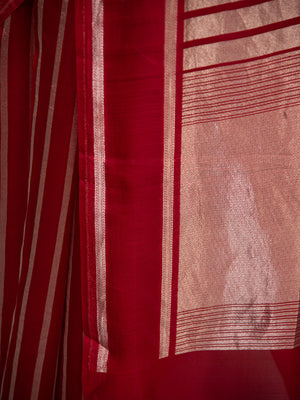 Red Stripe Silk Handloom Banarasi Saree