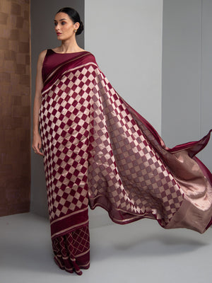 Directly crafted from the heart of Banaras, this Wine Silk Banarasi Saree combines traditional artistry with modern elegance. Its soft fabric offers effortless draping and lightweight comfort, making it an ideal choice for young women who appreciate timeless style with a contemporary touch.