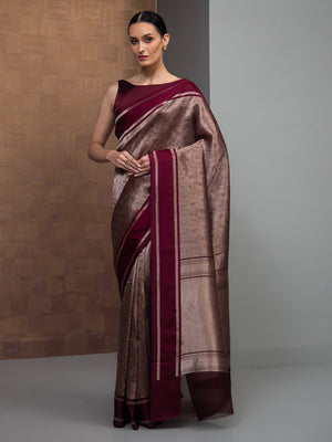 Directly crafted from the heart of Banaras, this Wine Silk Brocade Handloom Banarasi Saree combines traditional artistry with modern elegance. Its soft brocade fabric offers effortless draping and lightweight comfort, making it an ideal choice for young women who appreciate timeless style with a contemporary touch. This saree’s rich texture and classic appeal make it perfect for both formal occasions and festive celebrations.