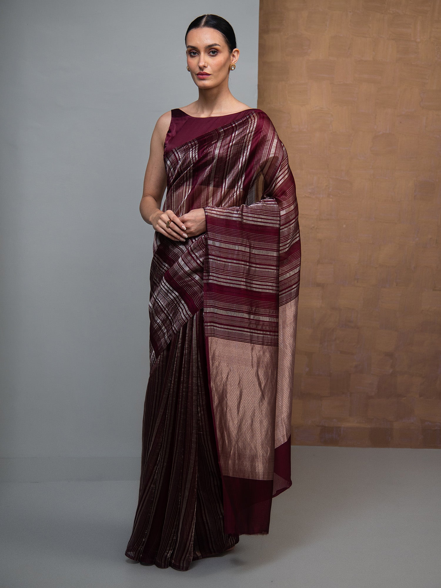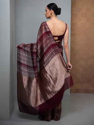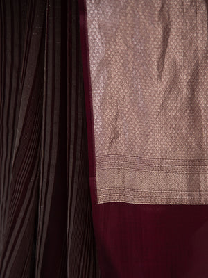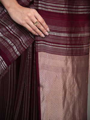 Wine Stripe Silk Handloom Banarasi Saree