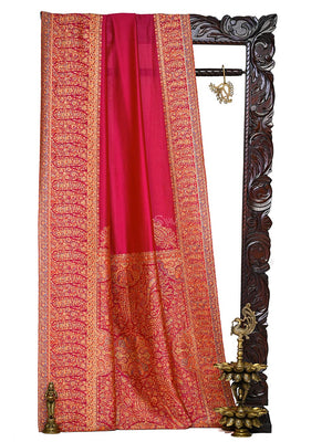 Magenta Pashmina Moonga Silk Handloom Banarasi Saree