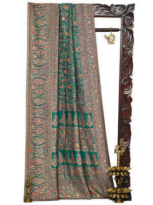 Teal Green Jaal Pashmina Moonga Silk Handloom Banarasi Saree