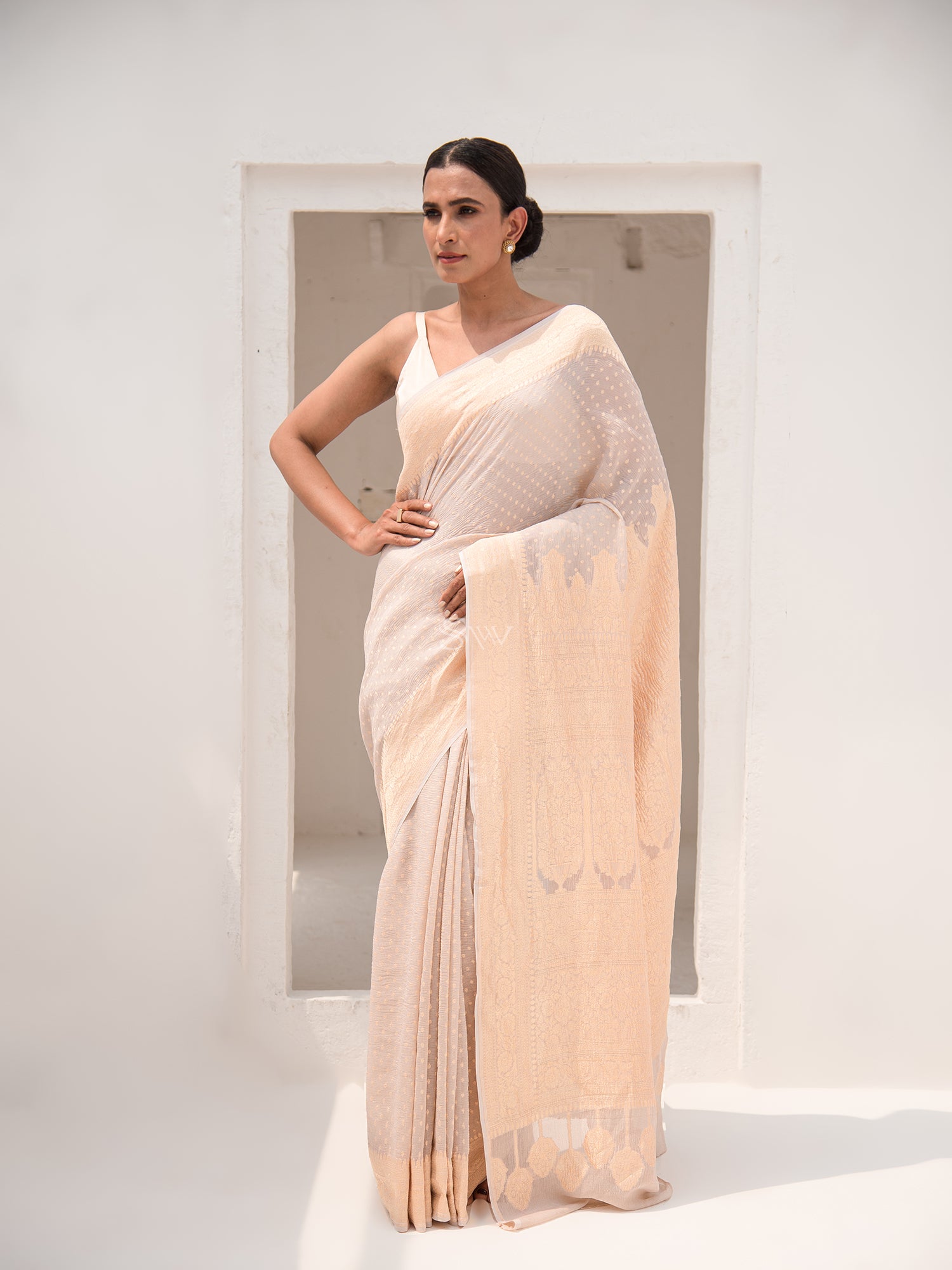 At Sacred Weaves, we bring you only authentic, handloom Banarasi sarees, directly from the weavers of Varanasi. Our Khaddi Georgette Banarasi Sarees are: