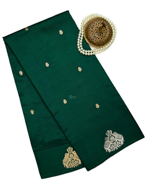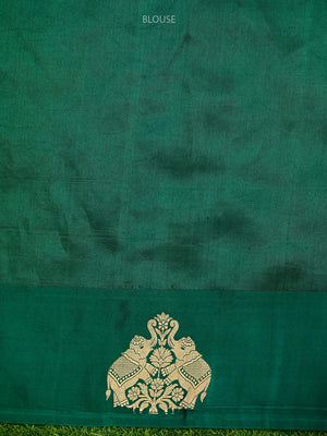 This elegant bottle green katan silk saree offers a lightweight and comfortable drape, making it an ideal choice for festivals and weddings. It features exquisite animal motifs along the border and a striking gold zari pallu, blending traditional craftsmanship with understated sophistication. The saree’s vibrant hues and minimalistic design create a graceful, refined look suitable for special occasions.