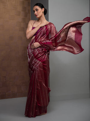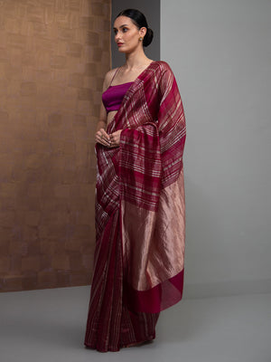 Directly crafted from the heart of Banaras, this Dark Magenta Silk Banarasi Saree combines traditional artistry with modern elegance. Its soft fabric offers effortless draping and lightweight comfort, making it an ideal choice for young women who appreciate timeless style with a contemporary touch.