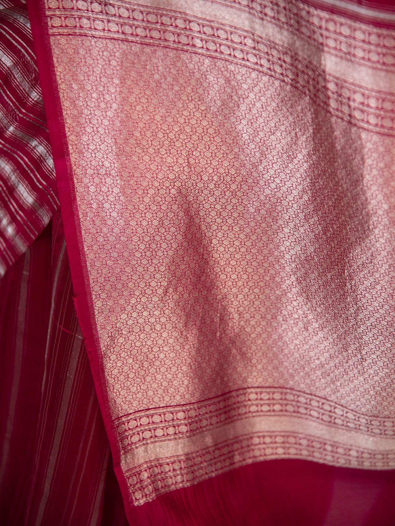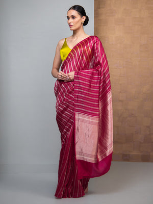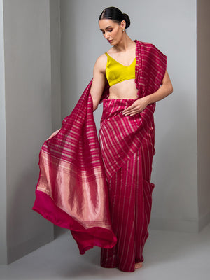 Directly crafted from the heart of Banaras, this Dark Pink Silk Banarasi Saree combines traditional artistry with modern elegance. Its soft fabric offers effortless draping and lightweight comfort, making it an ideal choice for young women who appreciate timeless style with a contemporary touch.