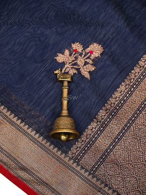 Chanderi Silk, Evergreen & Timeless Sarees that evoke festivity & Joy. Classic motifs featured on silk makes it a splendid drape. Bringing your finest weaves from Banaras in Navy Blue color. The Saree looks stunning and captivating on drape. It's a classic traditional saree apt for all celebrations.