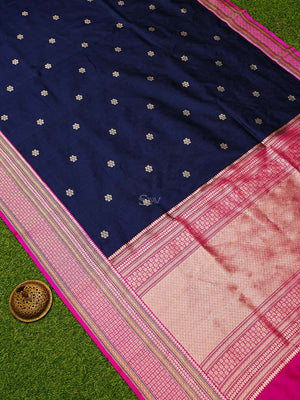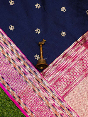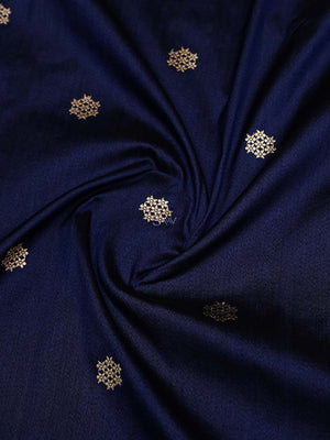 Navy Blue Booti Tussar Silk Handloom Banarasi Saree