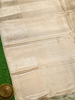 Directly from the core of Banaras, we present a handwoven pastel yellow Banarasi saree for young ladies who will love to wear flowy Banarasi Tissue Brocade sarees that embody tastefulness and exhibits an old-world appeal. Wearing a Banarasi Silk Saree resembles saying something of class, legacy, and prosperity.