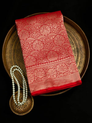 Directly crafted from the heart of Banaras, this Red Silk Brocade Handloom Banarasi Saree combines traditional artistry with modern elegance. Its soft brocade fabric offers effortless draping and lightweight comfort, making it an ideal choice for young women who appreciate timeless style with a contemporary touch. This saree’s rich texture and classic appeal make it perfect for both formal occasions and festive celebrations.