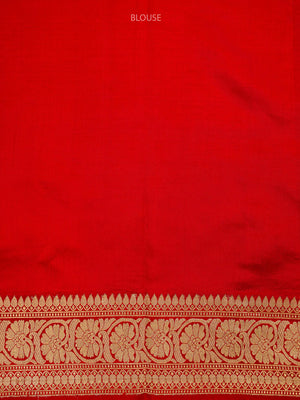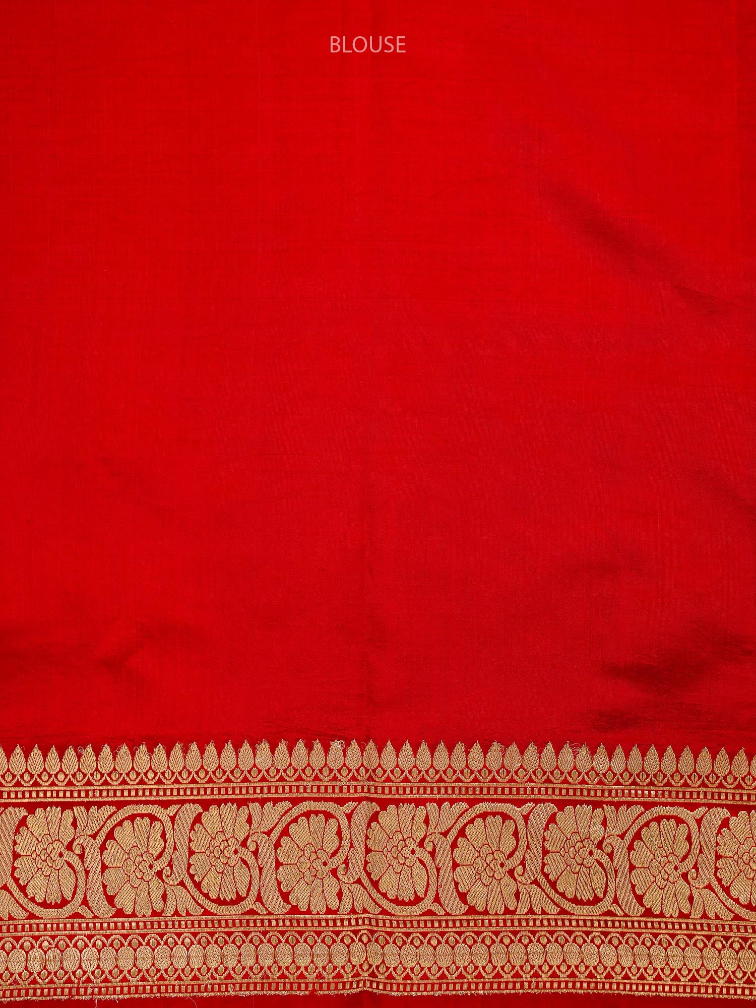 One of our stunning saree in red color this season. It's a luxury to be passed on to Generations. Beautiful gols zari floral booti all over with intricate detailing adds glamour to the saree. Floral gold zari border and breathtaking pallu bring the best of Indian weaving heritage. It's an elegant classic handwoven luxury.
