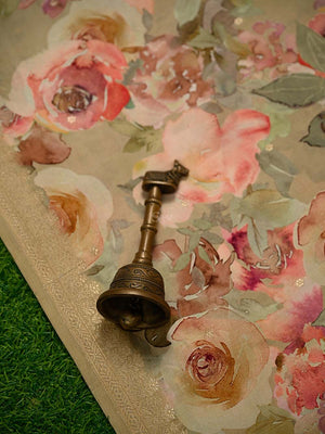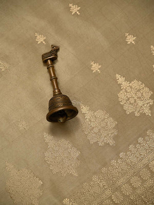 Dark Beige Booti Katan Silk Handloom Banarasi Suit