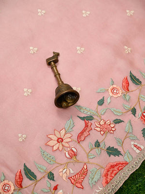 Pink Embroidered Organza Handloom Banarasi Suit
