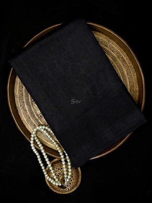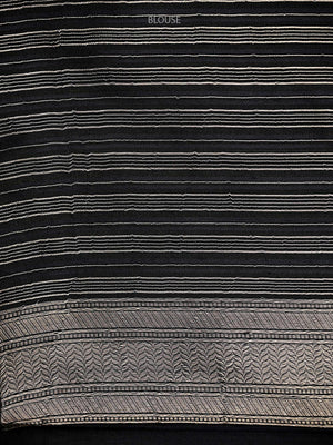 Black pure silk banarasi saree with tanchoi jaal across the body. It has a resham border and zari pallu. It's an artistic tradition and a classic masterpiece. This marvelous piece must for your trousseau collection.