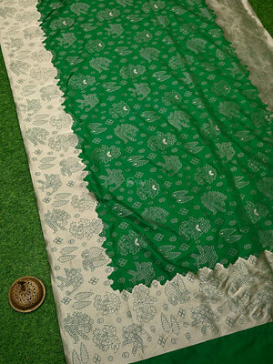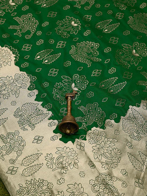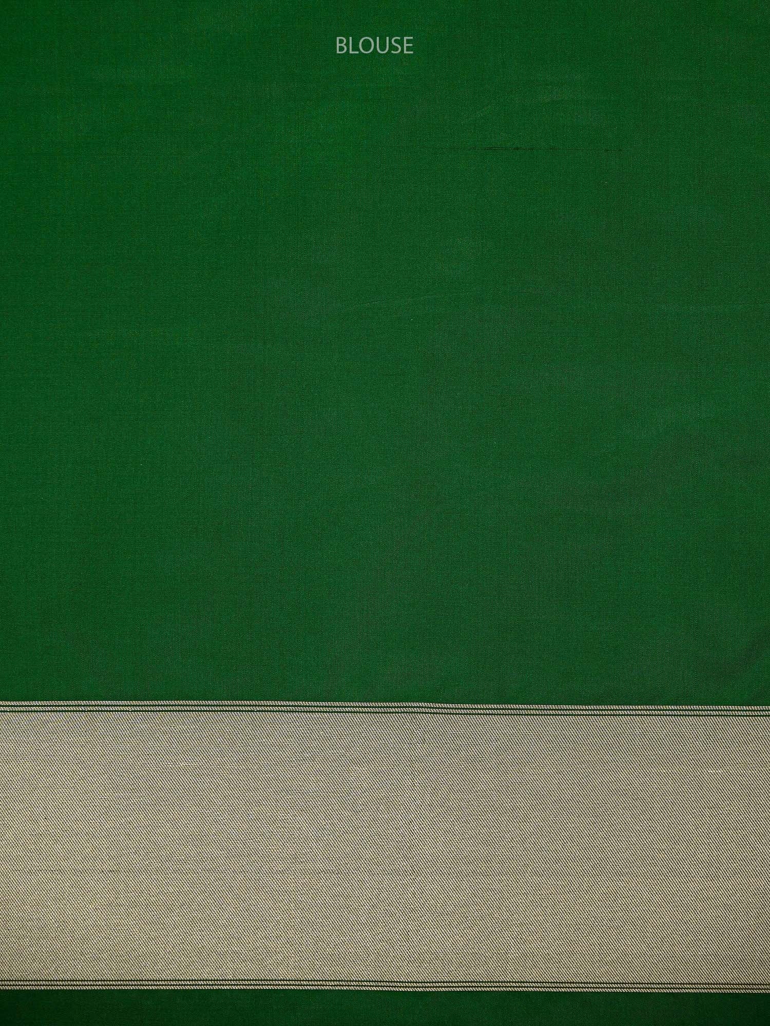 This Pure bottle green Katan Silk Handloom Banarasi Saree brings together traditional craftsmanship and modern style. Made from soft, luxurious silk, it features beautiful dull gold zari floral patterns woven throughout the fabric. The broad zari border adds a touch of grandeur, while delicate floral outlines on the body give it a contemporary feel. Perfect for special occasions, this saree combines the timeless elegance of Banarasi weaving with a fresh, modern twist that appeals to today's fashion-conscious wearer.
