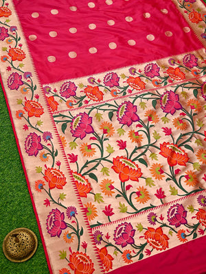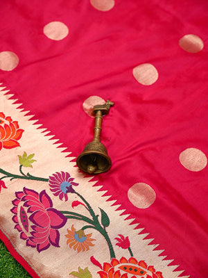Dark Pink Paithani Katan Silk Handloom Banarasi Saree