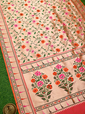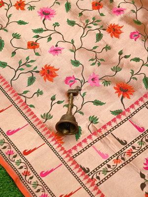 Magenta Orange Meenakari Paithani Brocade Handloom Banarasi Saree