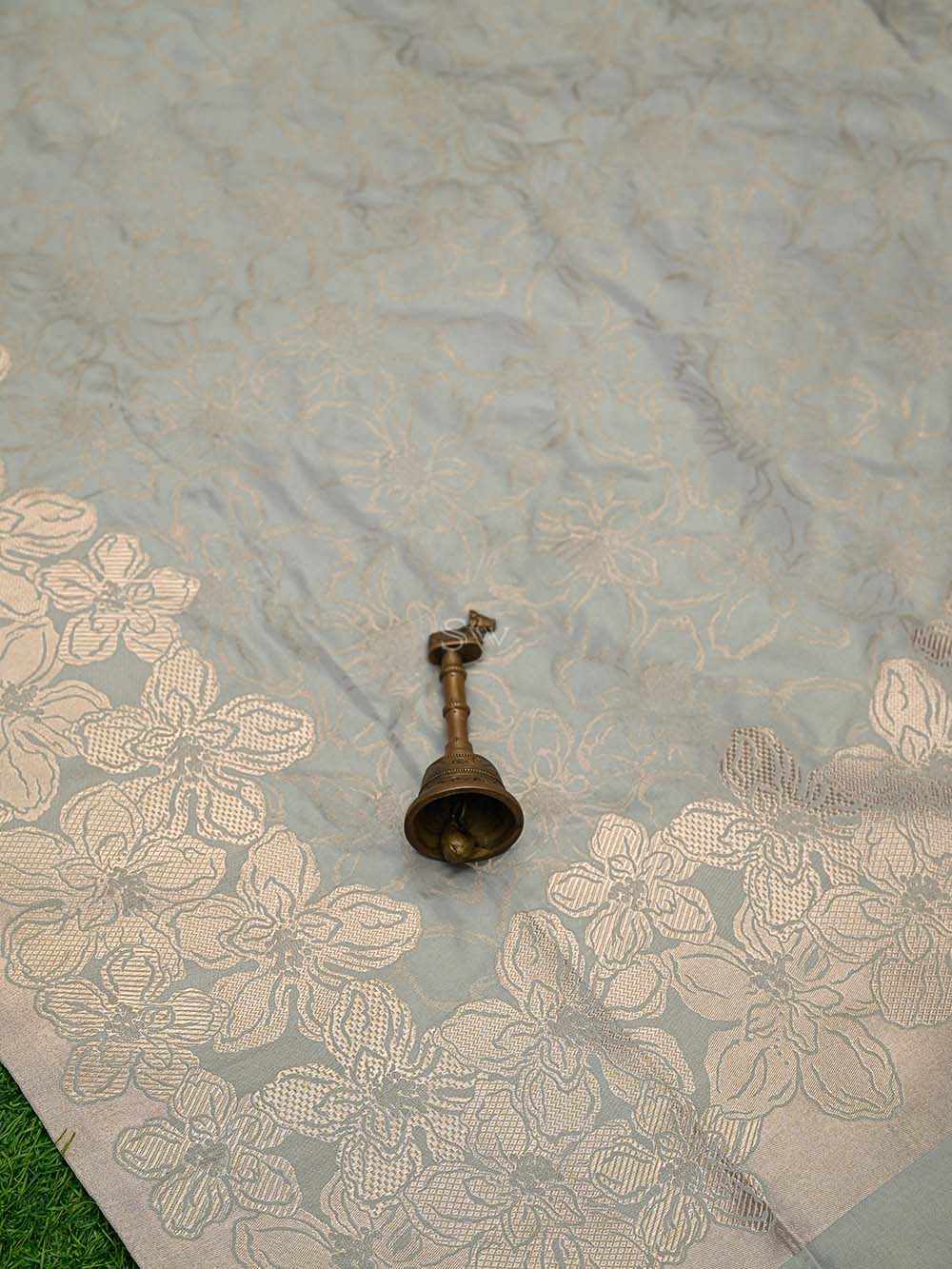 This Pure mint green Katan Silk Handloom Banarasi Saree brings together traditional craftsmanship and modern style. Made from soft, luxurious silk, it features beautiful dull gold zari floral patterns woven throughout the fabric. The broad zari border adds a touch of grandeur, while delicate floral outlines on the body give it a contemporary feel. Perfect for special occasions, this saree combines the timeless elegance of Banarasi weaving with a fresh, modern twist that appeals to today's fashion-conscious wearer.