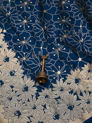 Navy Blue Jaal Katan Silk Handloom Banarasi Saree